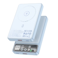Power bank Hoco Q18, 10000mAh, PD, 22.5W, магнитный, с функцией беспроводной зарядки, синій