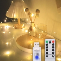 Светодиодная гирлянда USB, медная нить, теплый, білий, 20 м, 200 светодиодов, 8 режимов, с пультом