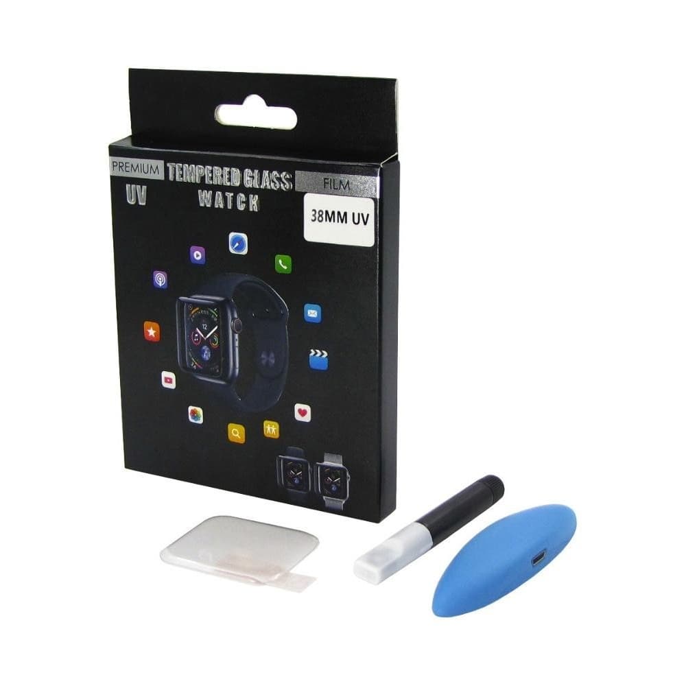 Купить Захисне скло Apple Watch 38mm, 0.25 мм, 3D, прозоре в комплекте с UV клеем и лампой, сумісне з чохлом | Закаленное защитное стекло можно и в нашем офисе, платить за доставку при этом не нужно.