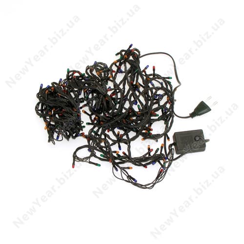 Гирлянда домашняя, 300 лампНовогодняя ламповая гирлянда с черным проводом и 4 цветами свечения - красным, зеленым, желтым и синим. Черный провод слабо заметен в темноте или на темных поверхностях. Гирлянды классического черного цвета обычно используются для украшение зеленой ёлки. Через блок управления можно установить любой из 8 режимов работы с медленным и быстрым включением/отключением, затуханием/разгоранием. Источник света: миниатюрная лампа накаливания Ламп: 300 шт Длина: 9,5 метров Цвет свечения: зеленый, синий, красный, желтый Цвет провода: черный Режимов переключения: 8