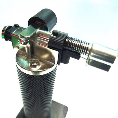 Легкая и удобная портативная горелка с заправкой от обычного бытового газового баллона для зажигалок.