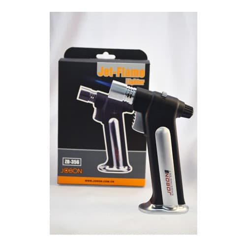 Газовая горелка Jobon ZB-356 с пьезоподжигом Легкая и удобная портативная горелка с заправкой от обычного бытового газового баллона для зажигалок. Jobon ZB-356 - горелка в форме пистолета. Чаще всего в горелках сопло находится горизонтально. В Jobon ZB-356 сопло приподнято от горизонтали примерно на 20 градусов. Управление расходом газа - поворотная ручка - находится на задней стороне. Рассеивание пламени - рычаг - сверху. Кнопка искры сделана как курок пистолета. Основные функции: - Пьезоподжиг.