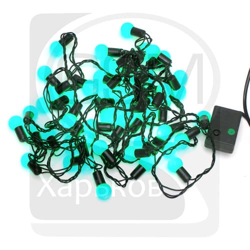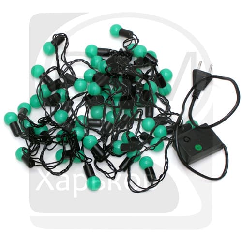 Гирлянда домашняя, 50 светодиодов в зеленых шариках, 2 см, зеленый свет, чорний провод