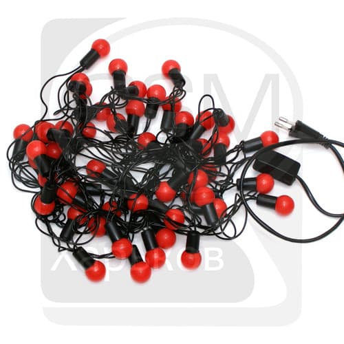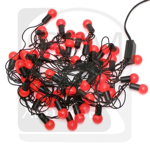 Гирлянда домашняя, 50 светодиодов в красных шариках, 2 см, красный свет, чорний провод