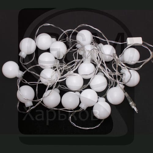 Гирлянда наружная, 20 светодиодов в белых шариках, 5 см, многоцветная, білий провод