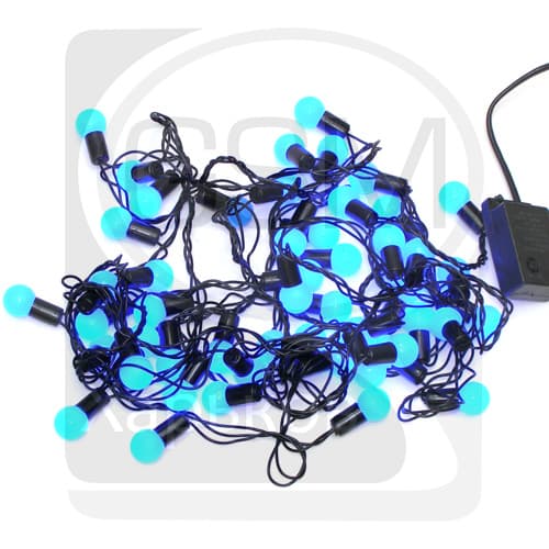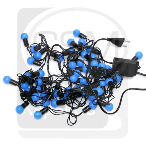 Гирлянда домашняя, 50 светодиодов в синих шариках, 2 см, синій свет, чорний провод