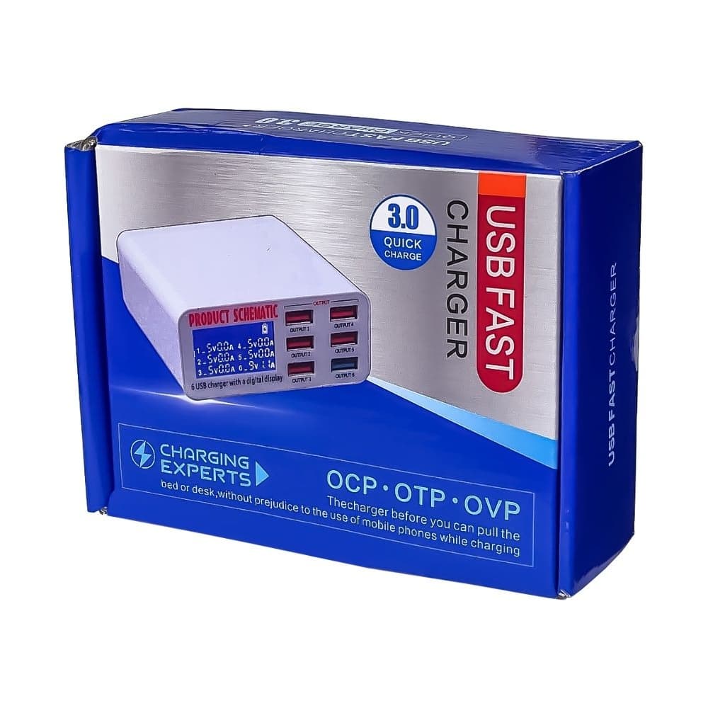 Сетевое зарядное устройство WLX-896, сетевое, Quick Charge, 6 USB-портов c выходом 5 В 6 А, белое