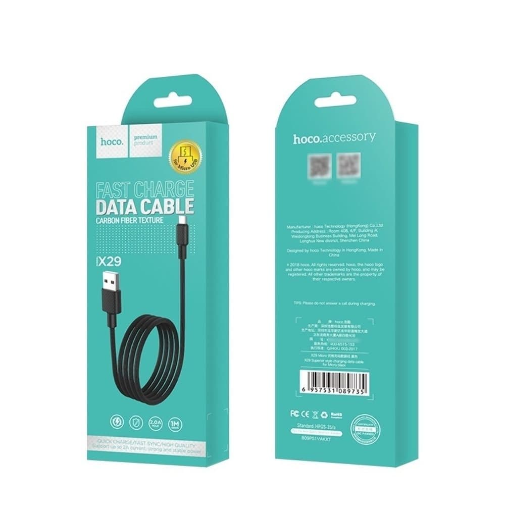 USB-кабель Hoco X29, Micro-USB, 2.4 А, 100 см, чорний