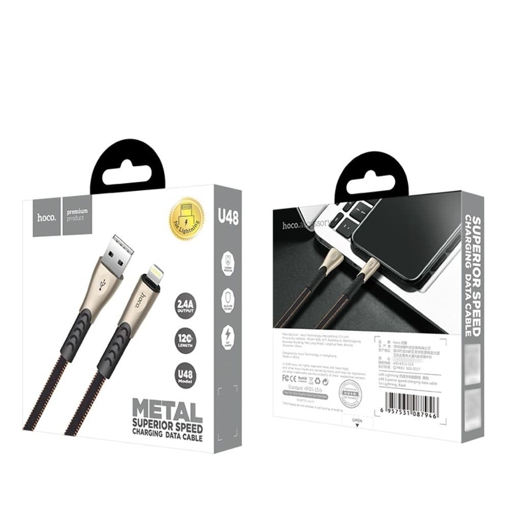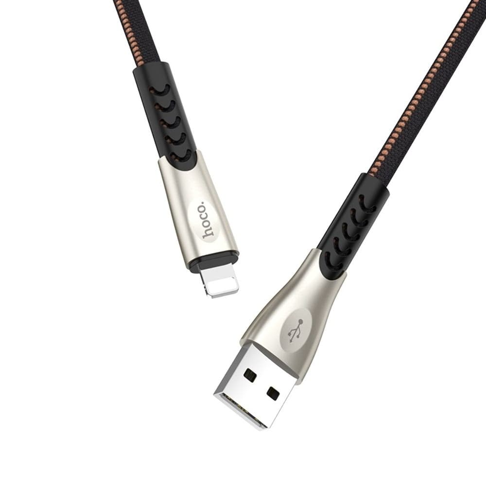 USB-кабель Hoco U48, Lightning, 120 см, плоский, в нейлоновой оплетке, 2.4 А, чорний