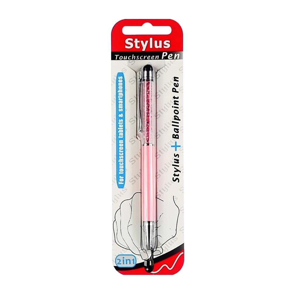 Стилус емкостный, с шариковой ручкой, металлический, розовый с розовыми кристаллами