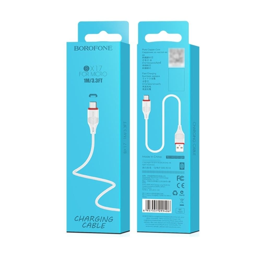 USB-кабель Borofone BX17, Micro-USB, 2.4 А, 100 см, білий