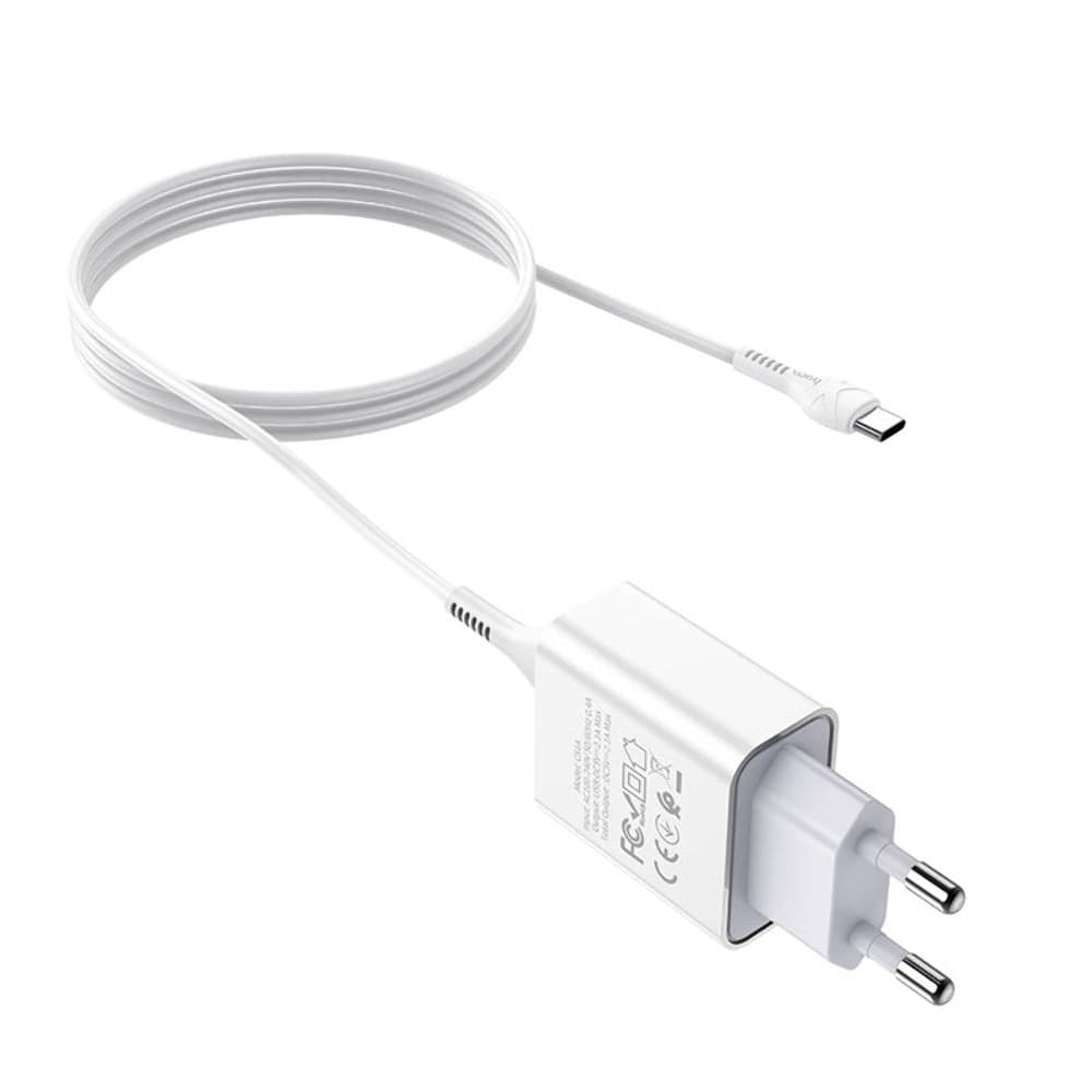 Сетевое зарядное устройство Hoco C81A, 1 USB, Type-C, 2.1 А, белое, с кабелем Type-C