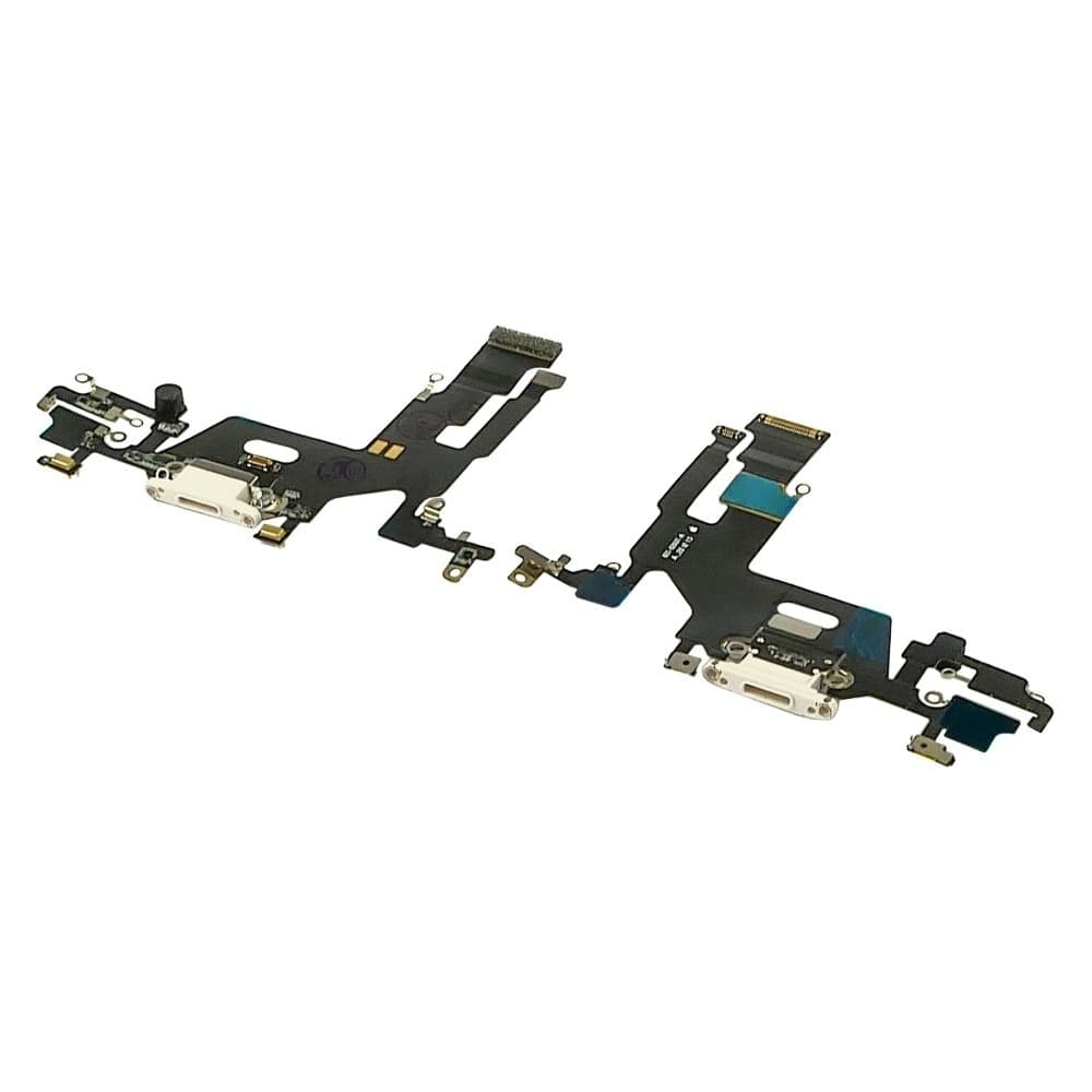 Плата зарядки Apple iPhone 11, шлейф коннектора зарядки, коннектора наушников, белая, с микрофоном, Original (PRC)