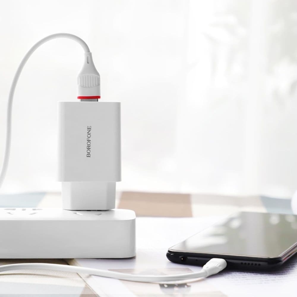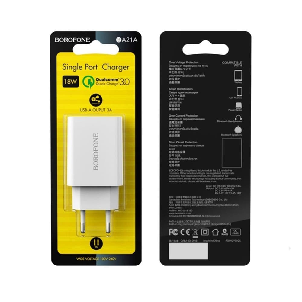 Купить Сетевое зарядное устройство Borofone BA21A, 1 USB, 18 Вт, Quick Charge 3.0, белое можно и в нашем офисе, платить за доставку при этом не нужно.