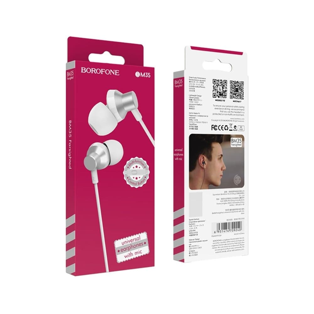 Купить Наушники вакуумные Borofone BM35, серебристые можно и в нашем офисе, платить за доставку при этом не нужно.