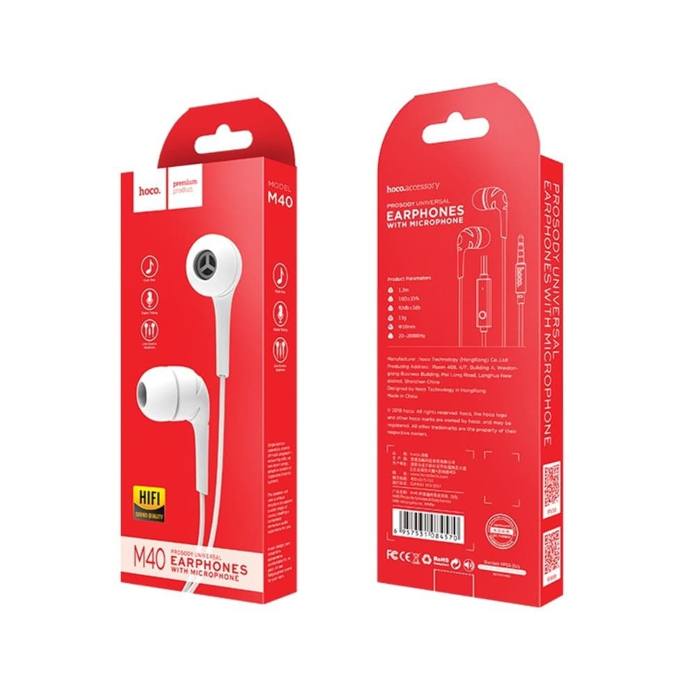 Купить Наушники вакуумные Hoco M40, белые можно и в нашем офисе, платить за доставку при этом не нужно.