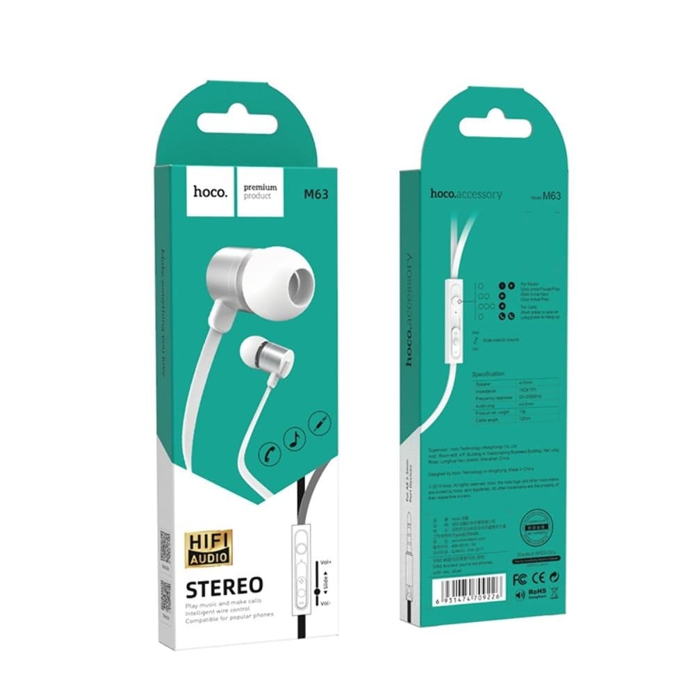 Купить Наушники вакуумные Hoco M63, серебристые можно и в нашем офисе, платить за доставку при этом не нужно.
