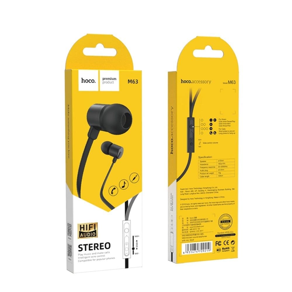 Купить Наушники вакуумные Hoco M63, черные можно и в нашем офисе, платить за доставку при этом не нужно.