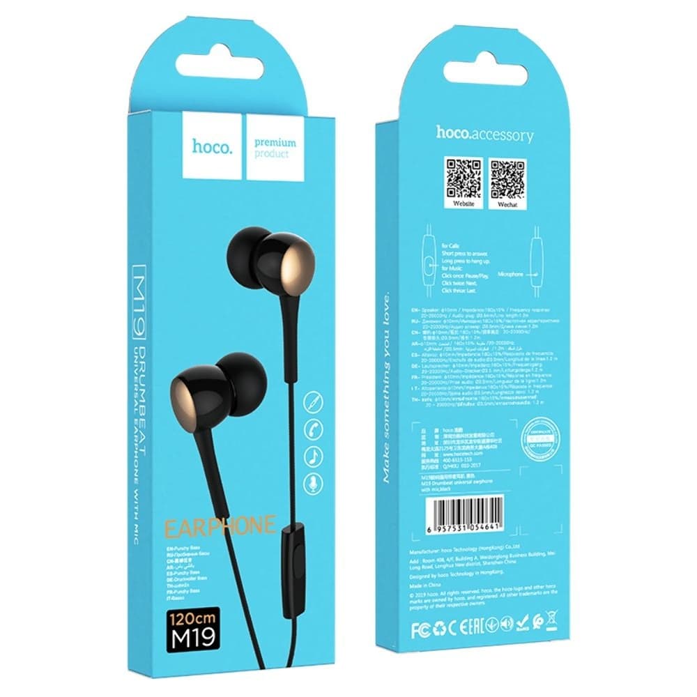 Купить Наушники вакуумные Hoco M19, черные можно и в нашем офисе, платить за доставку при этом не нужно.