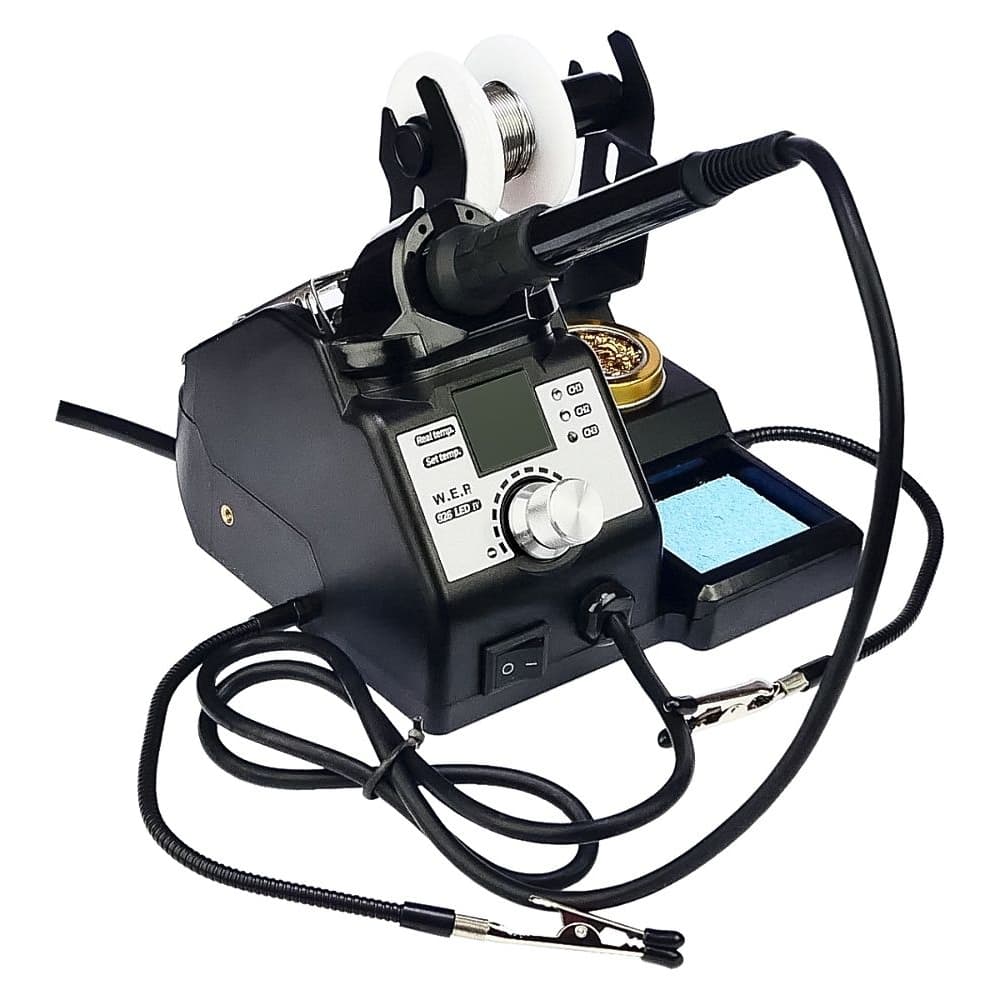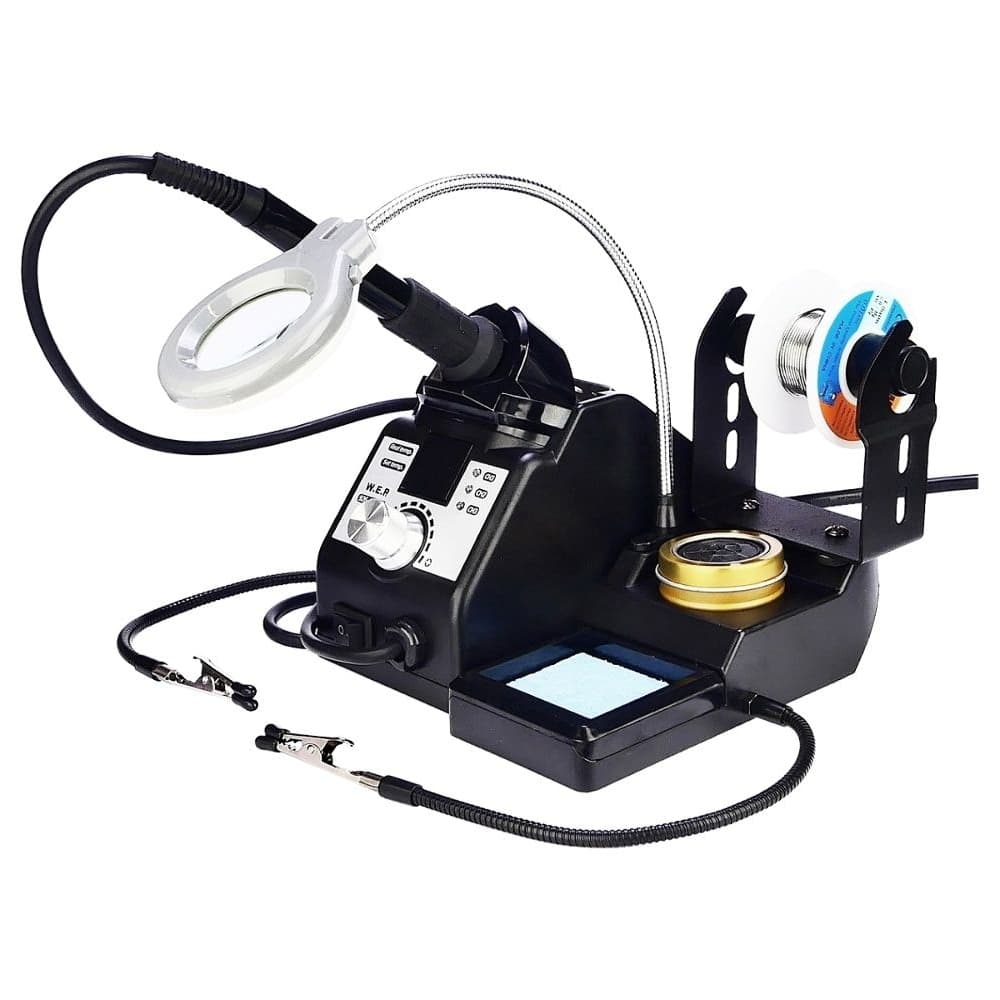 Паяльная станция WEP 926 LED-IV, паяльник, цифровая индикация, лупа, подсветка, держатели плат и припоя, 60 W, 90-400 C | гарантия 6 мес.