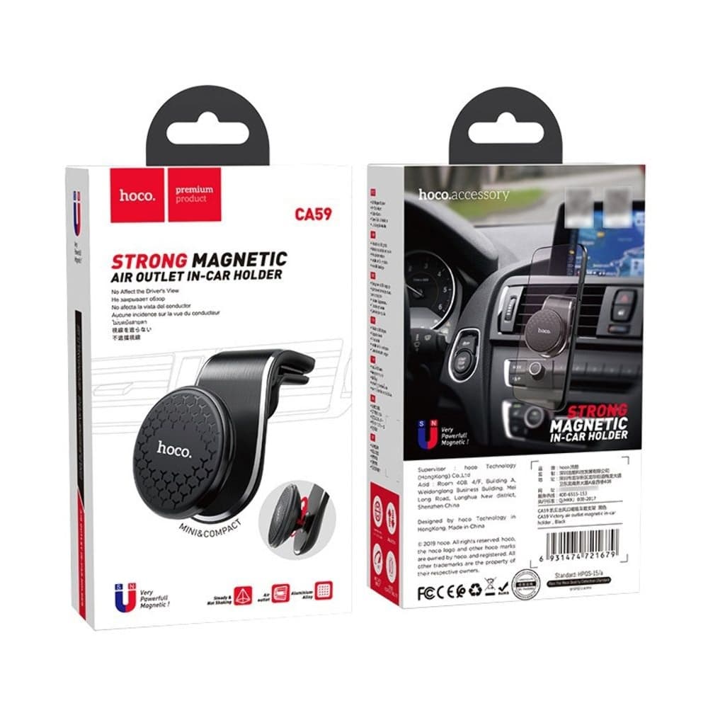 Автодержатель Hoco CA59, магнитный, чорний