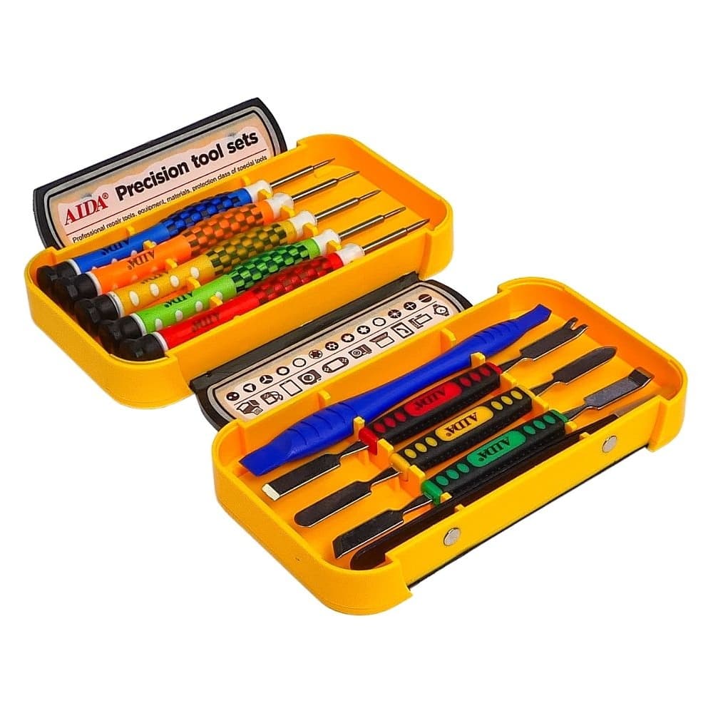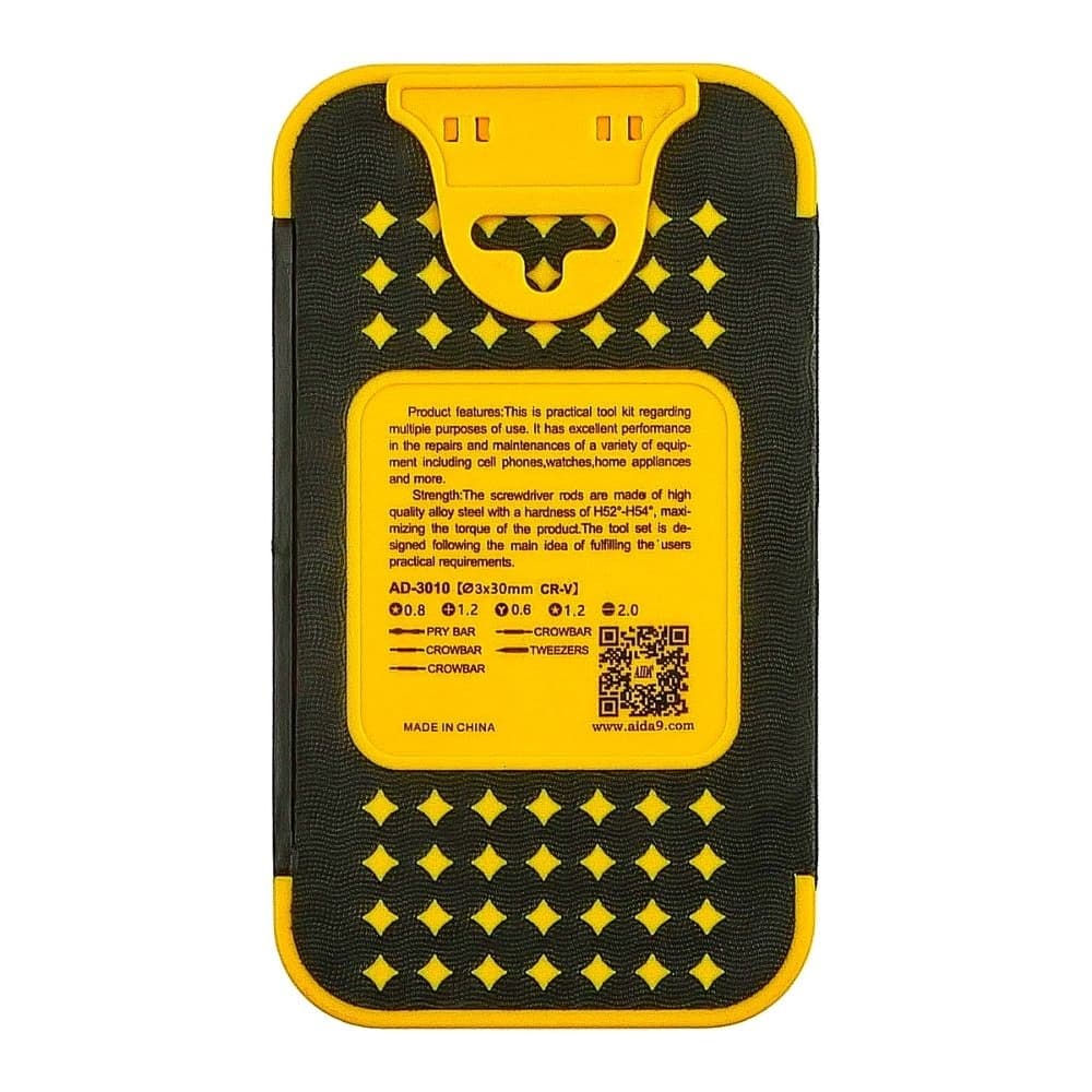Купить Набір інструментів AIDA AD-3010 (викрутки: Y0.6, -2.0, +1.2, *0.8, *1.2, 4 двосторонні лопатки, пінцет прямий) можно и в нашем офисе, платить за доставку при этом не нужно.