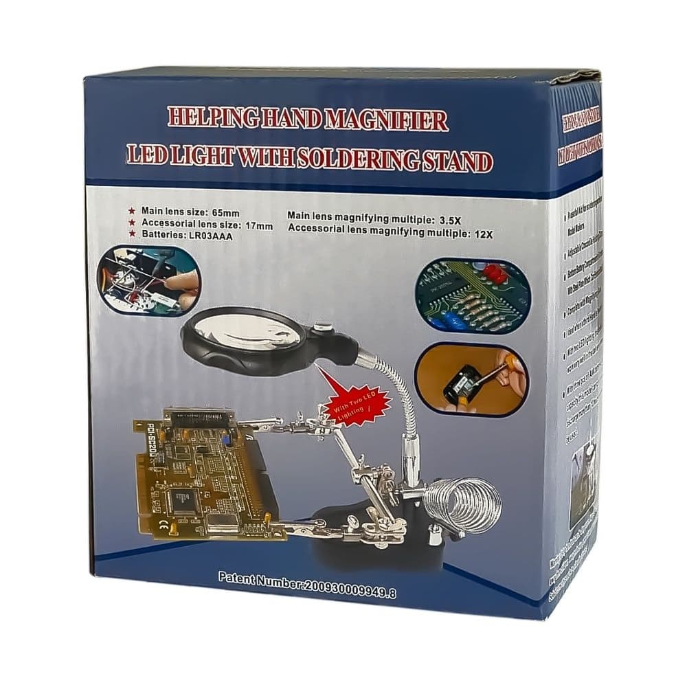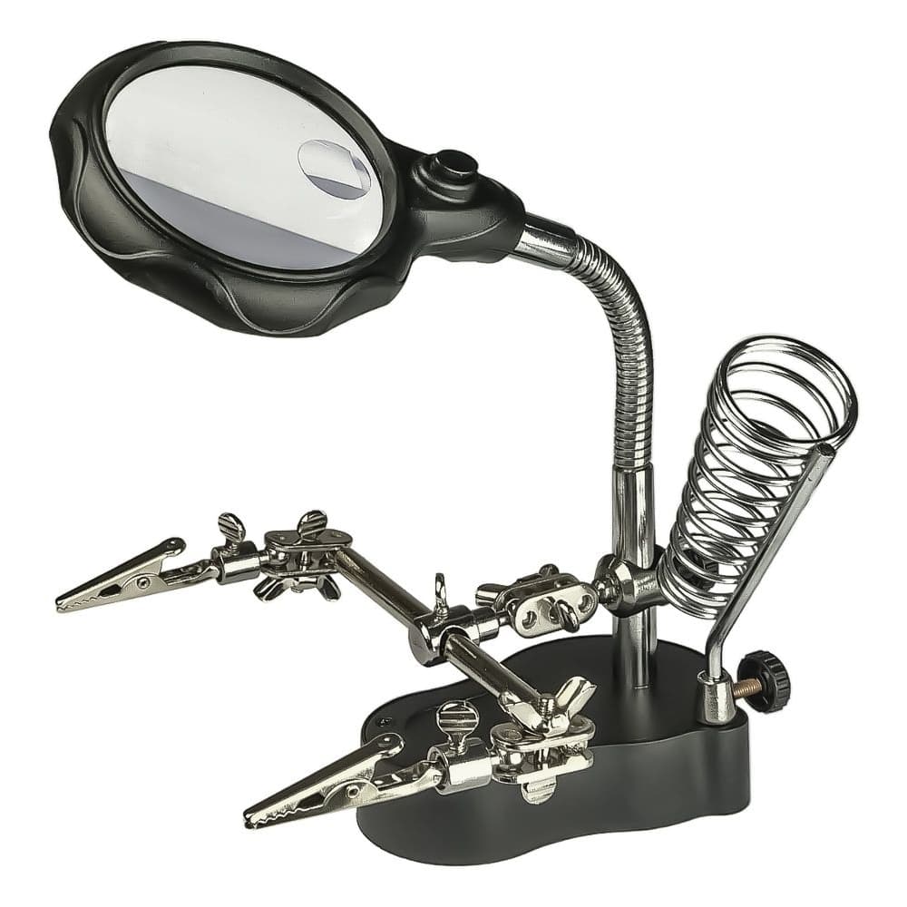 Купить Тримач плат и паяльника MG16126-A, с LED-подсветкой и двойной лупой, большая лупа d=65 мм, 3.5x; малая лупа d=17, 12x | держатель можно и в нашем офисе, платить за доставку при этом не нужно.