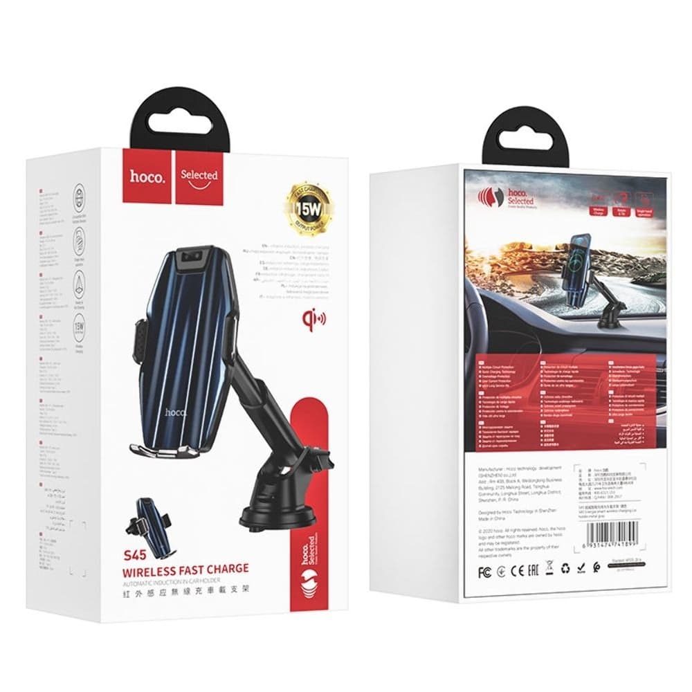 Автодержатель Hoco S45, сірий, с беспроводной зарядкой