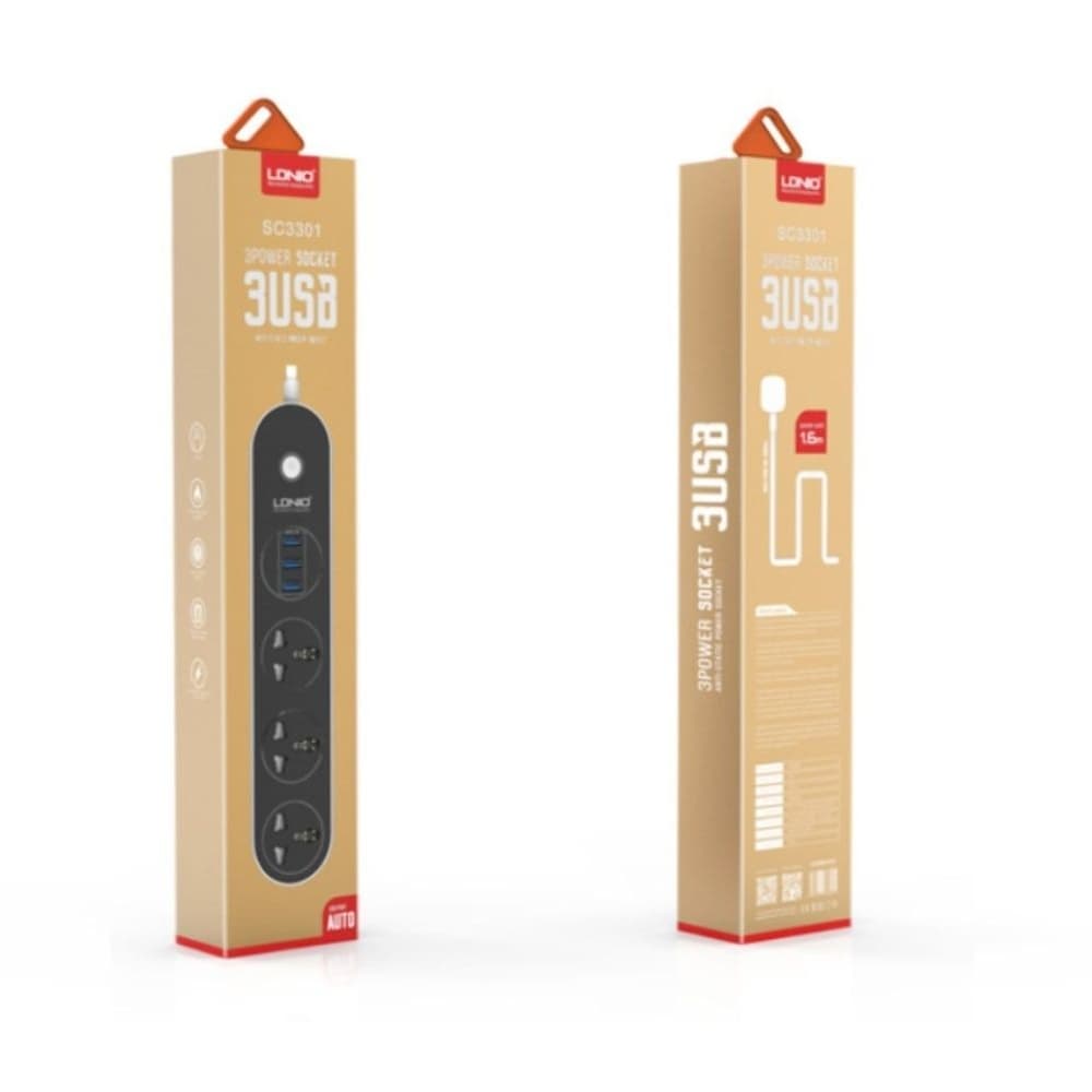 Сетевой удлинитель Ldnio SC3301, 3 розетки, 3 USB, 5V, 3.1 А, 15.5W, кабель 1.6м