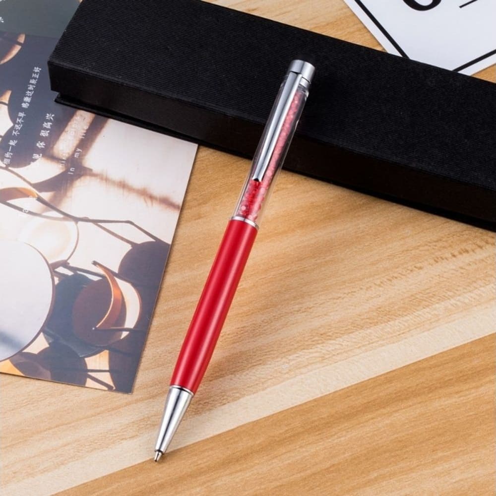 Стилус емкостный, с шариковой ручкой, металлический, красный, с красными кристаллами