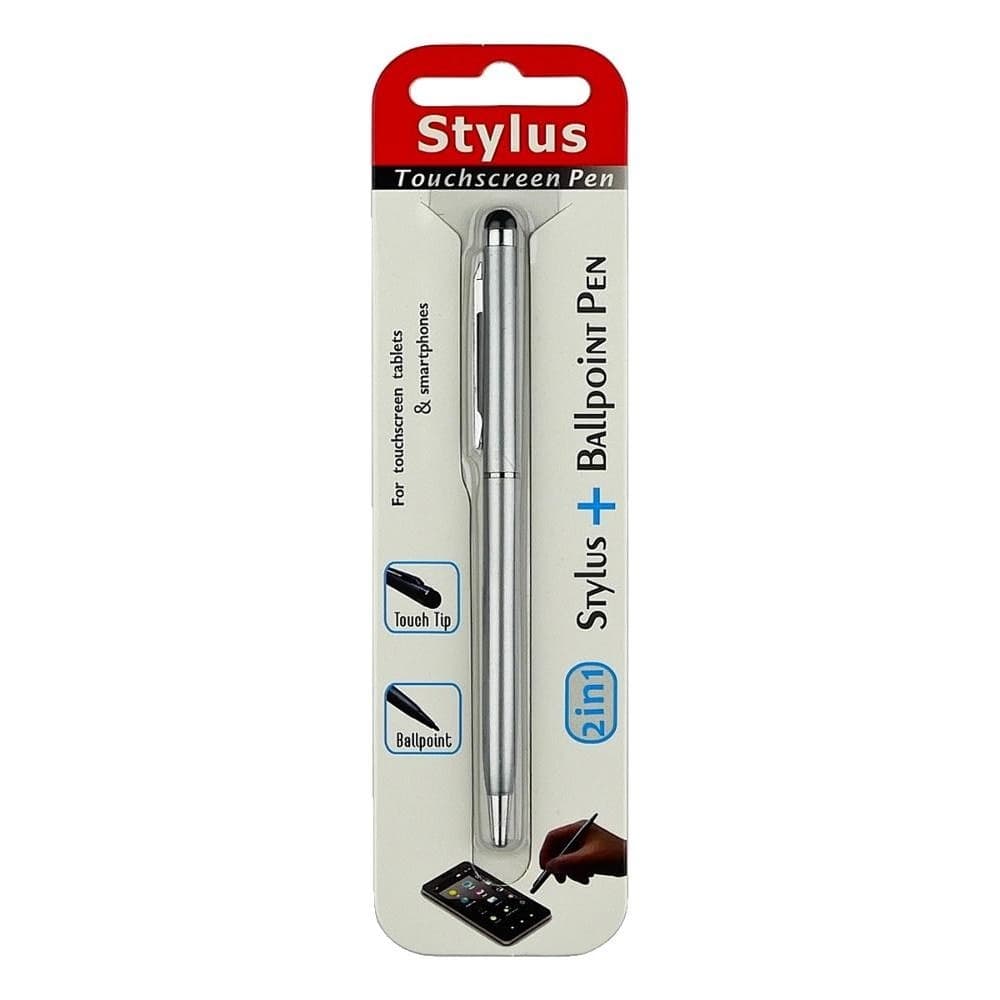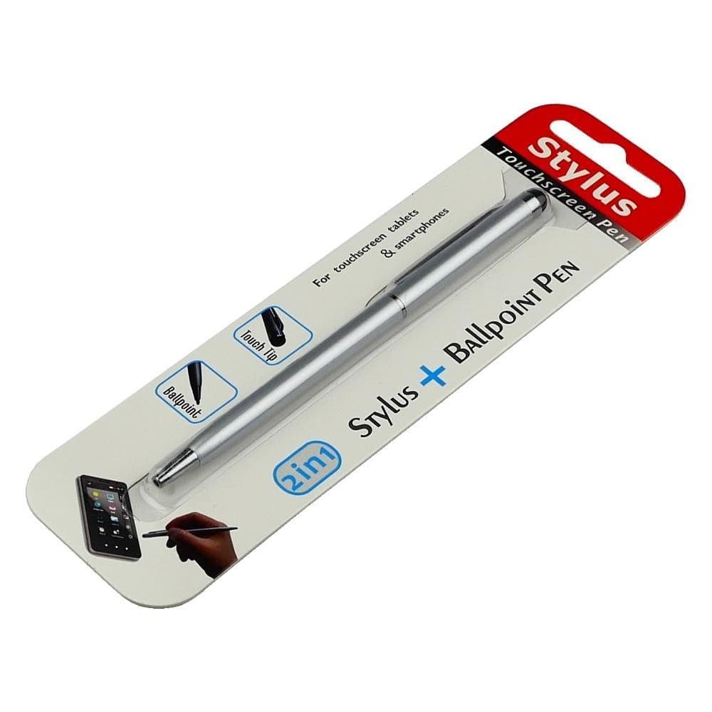 Стилус емкостный PS100, с шариковой ручкой, металлический, сірий