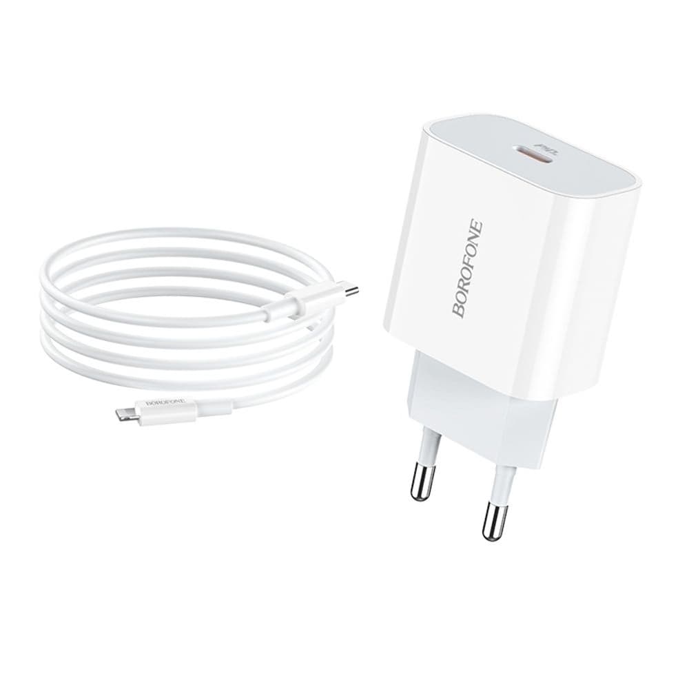 Сетевое зарядное устройство Borofone BA38A Plus, Power Delivery, Quick Charge, 20 Вт, Type-C на Lightning, белое