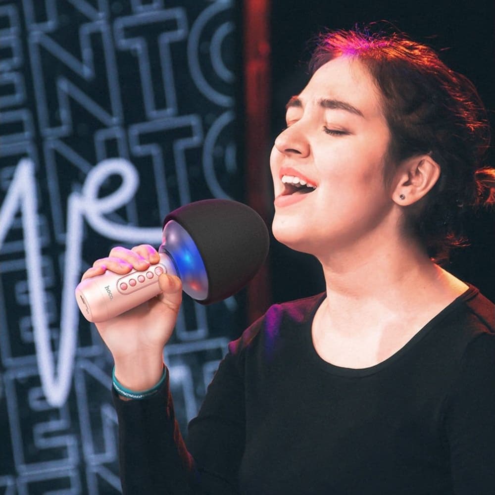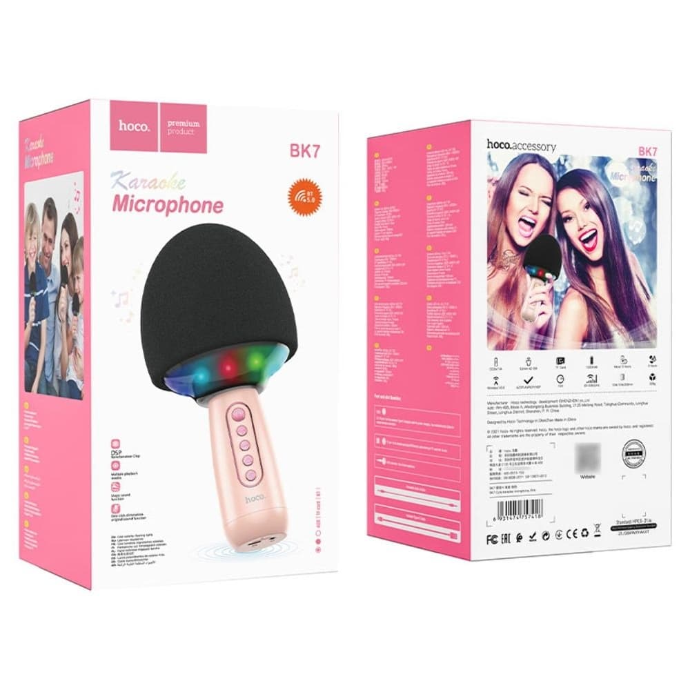 Купить Микрофон караоке Hoco BK7, беспроводный, со встроенной колонкой, розовый можно и в нашем офисе, платить за доставку при этом не нужно.