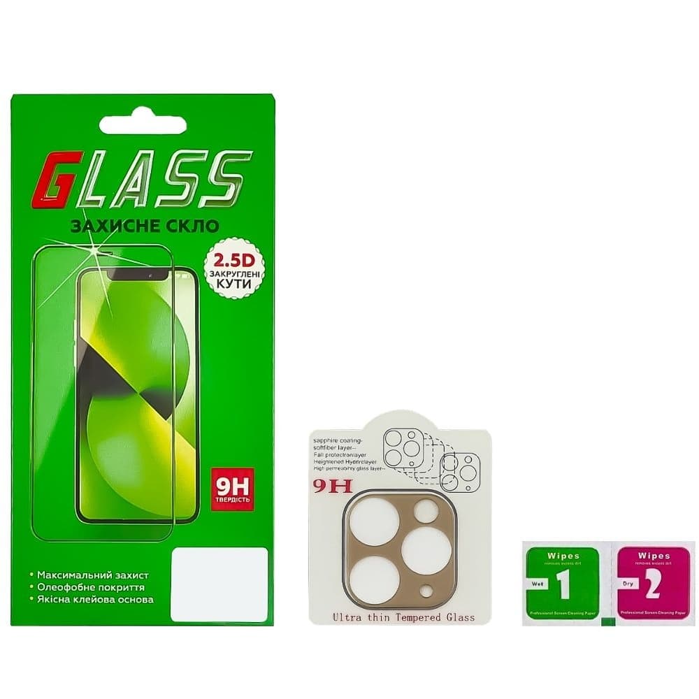 Купить Захисне скло Apple iPhone 11 Pro, iPhone 11 Pro Max, на камеру, iNobi, Full Glue, клей на усій поверхні, 2.5D, золотистое | Закаленное защитное стекло можно и в нашем офисе, платить за доставку при этом не нужно.