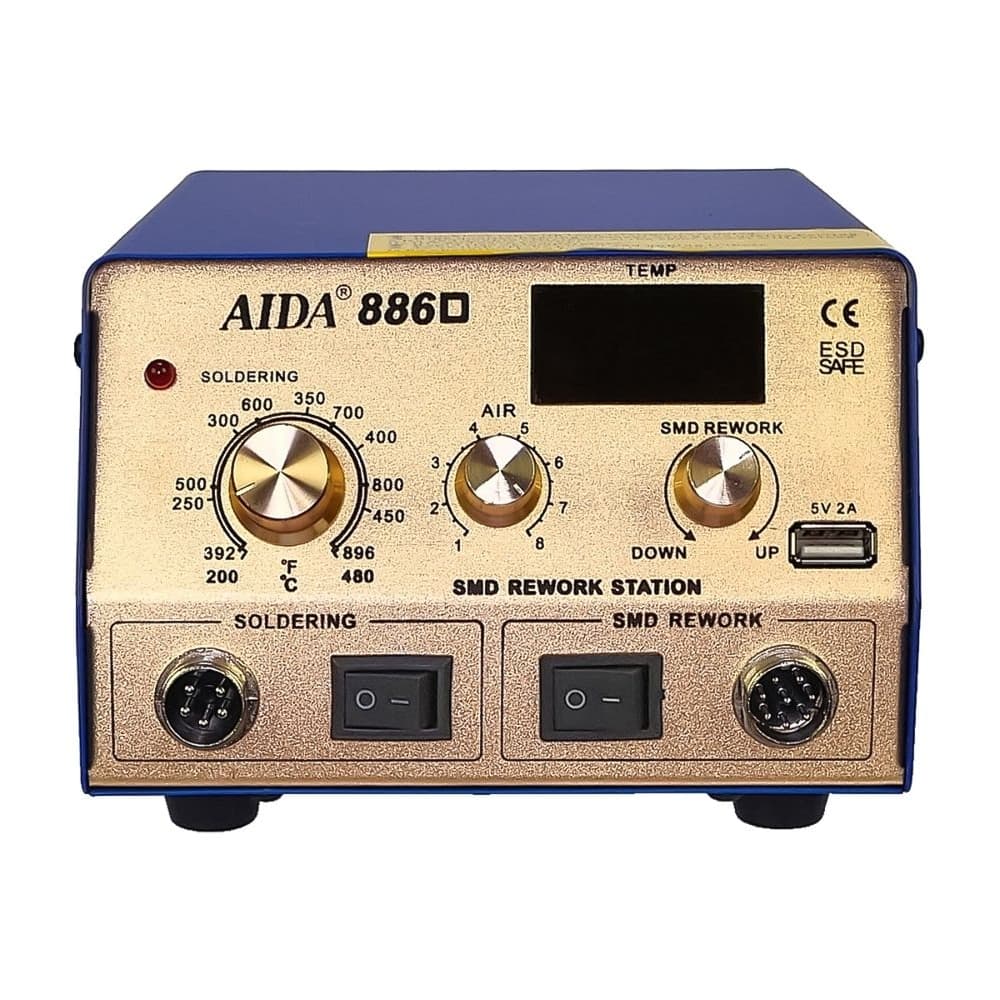 Купить Паяльная станция Aida 886D, фен с цифровой индикацией, паяльник с аналоговой регулировкой температуры, USB 5V 2A | гарантия 6 мес. можно и в нашем офисе, платить за доставку при этом не нужно.