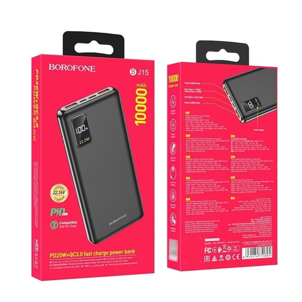 Купить Power bank Borofone BJ15, 10000 mAh, 22.5 Вт, Power Delivery (20 Вт), Quick Charge 3.0, чорний можно и в нашем офисе, платить за доставку при этом не нужно.