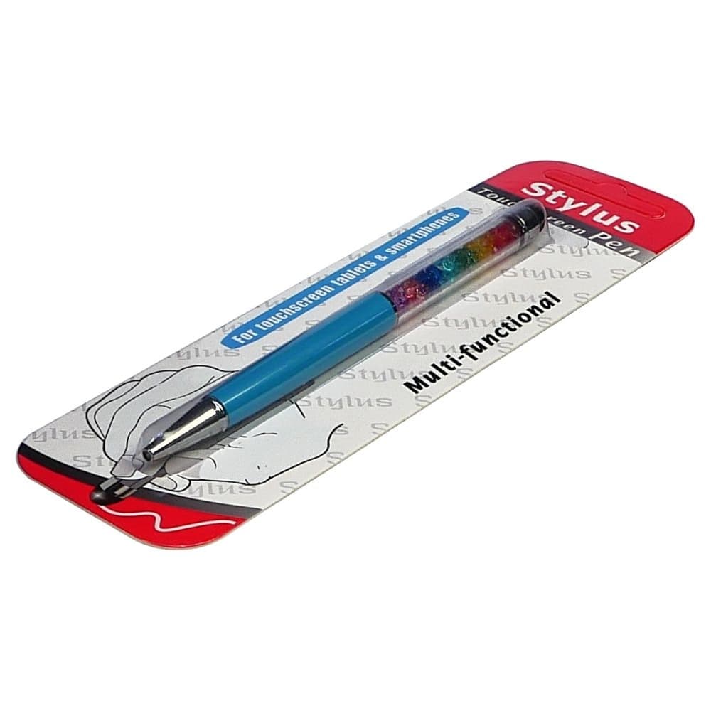 Стилус емкостный, с шариковой ручкой, металлический, голубой, с кристаллами цветов радуги