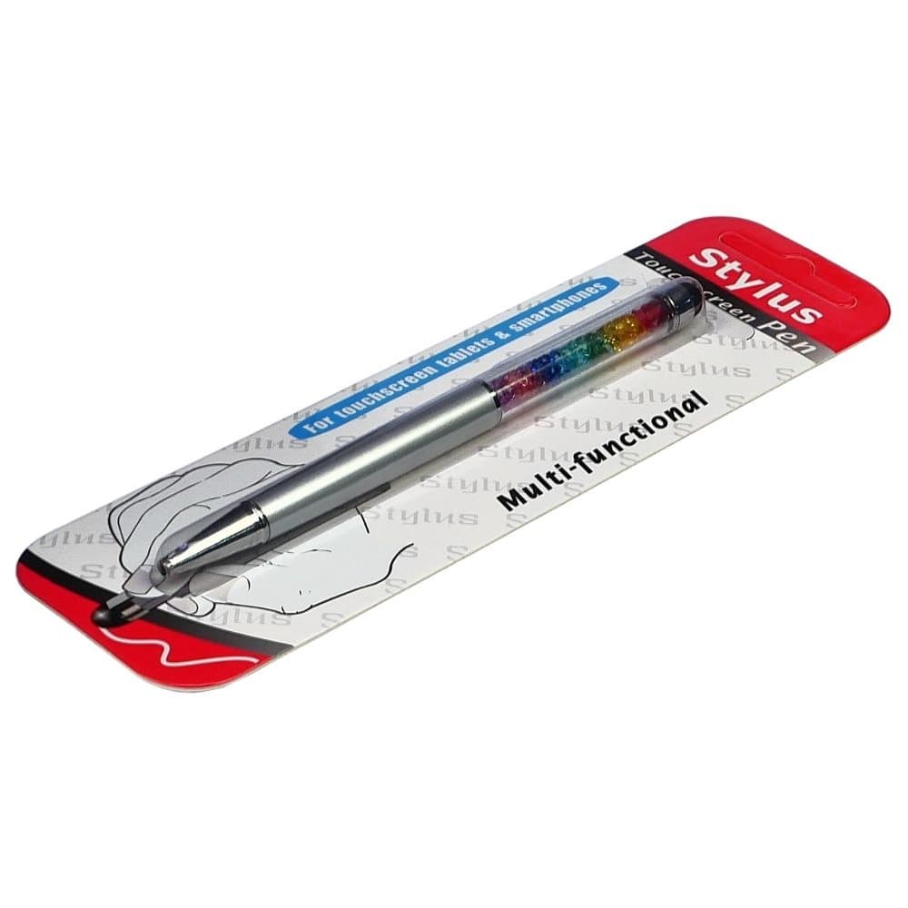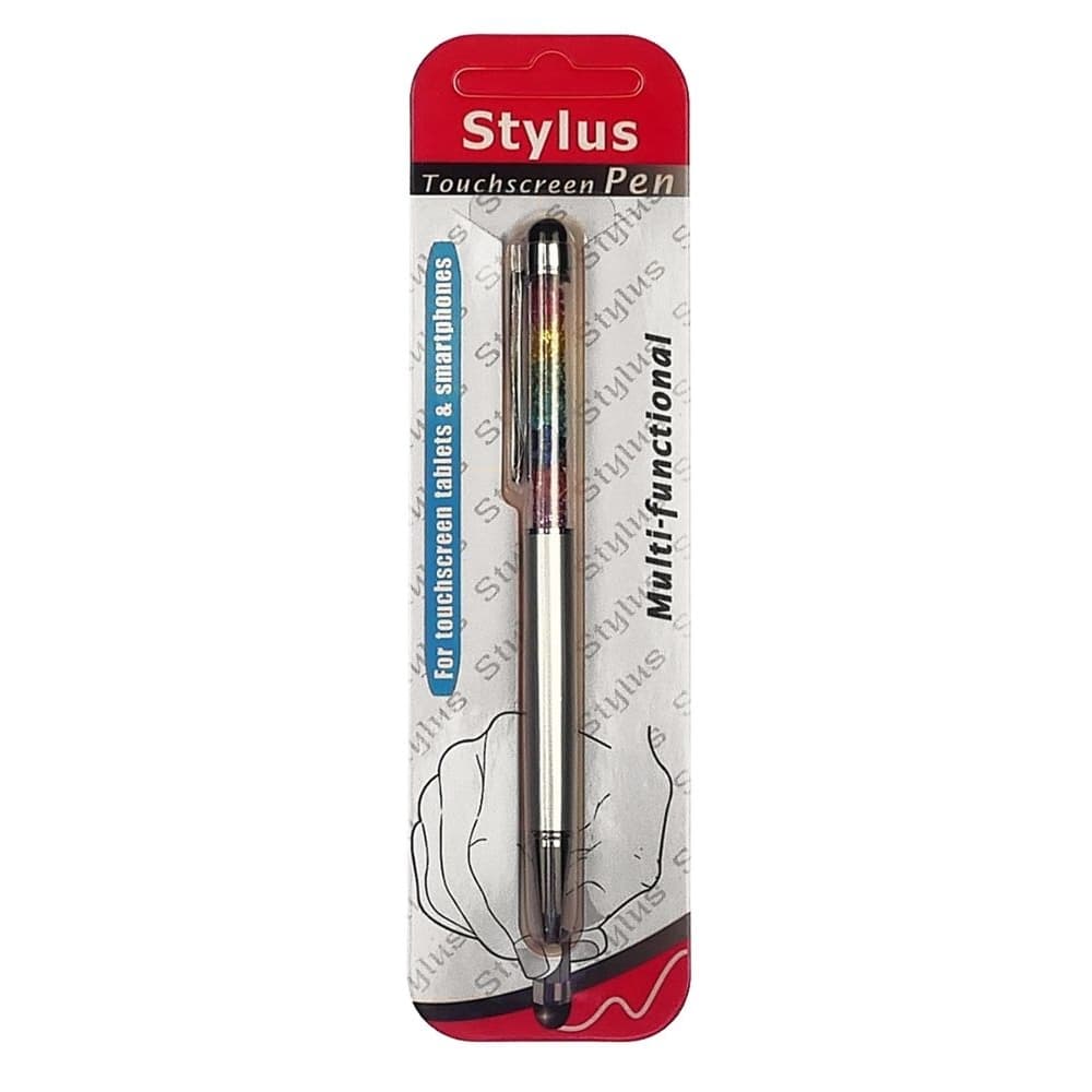 Стилус емкостный, с шариковой ручкой, металлический, серебристый, с кристаллами цветов радуги