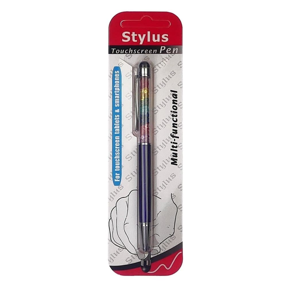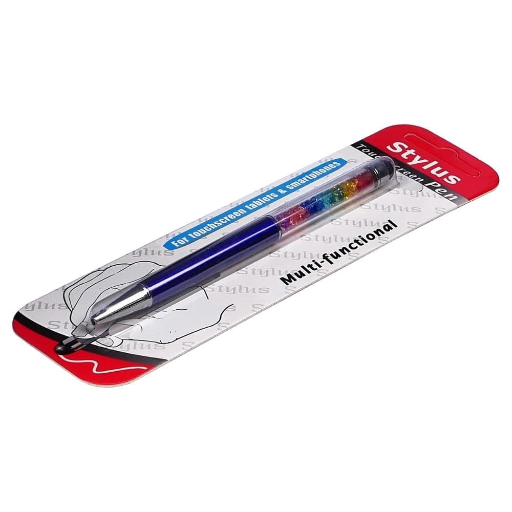 Стилус емкостный, с шариковой ручкой, металлический, сине-фиолетовый, с кристаллами цветов радуги