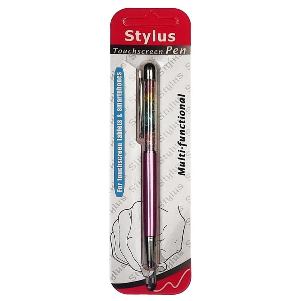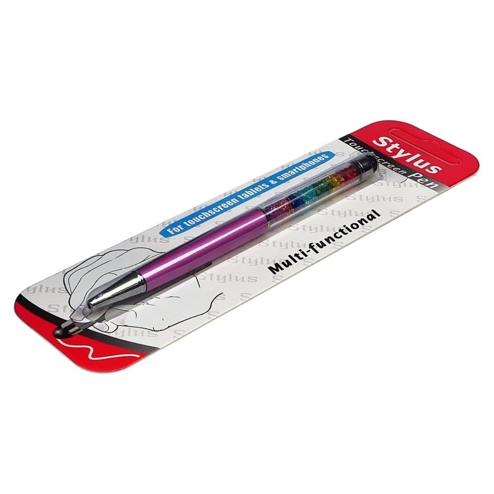 Стилус емкостный, с шариковой ручкой, металлический, фиолетовый, с кристаллами цветов радуги