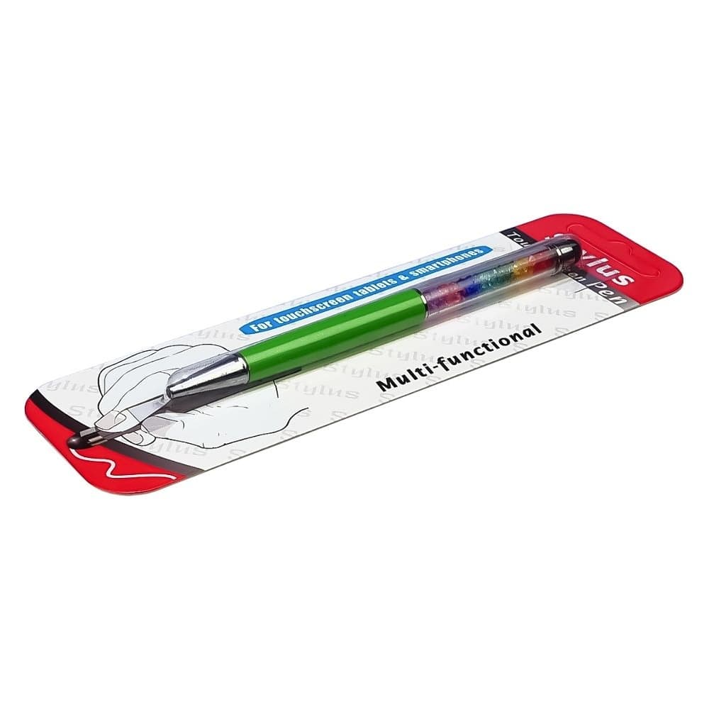 Стилус емкостный, с шариковой ручкой, металлический, зеленый, голубой, с кристаллами цветов радуги