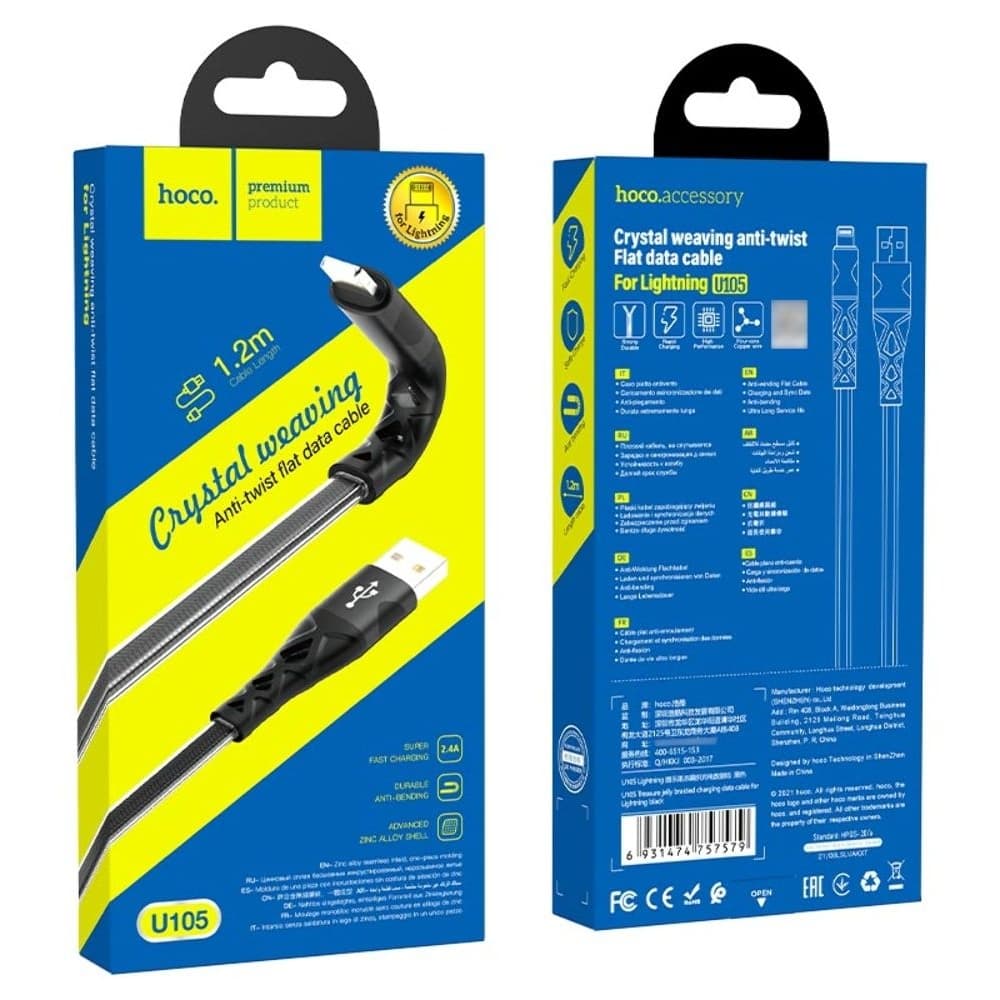 USB-кабель Hoco U105, Lightning, 2.4 А, 120 см, чорний