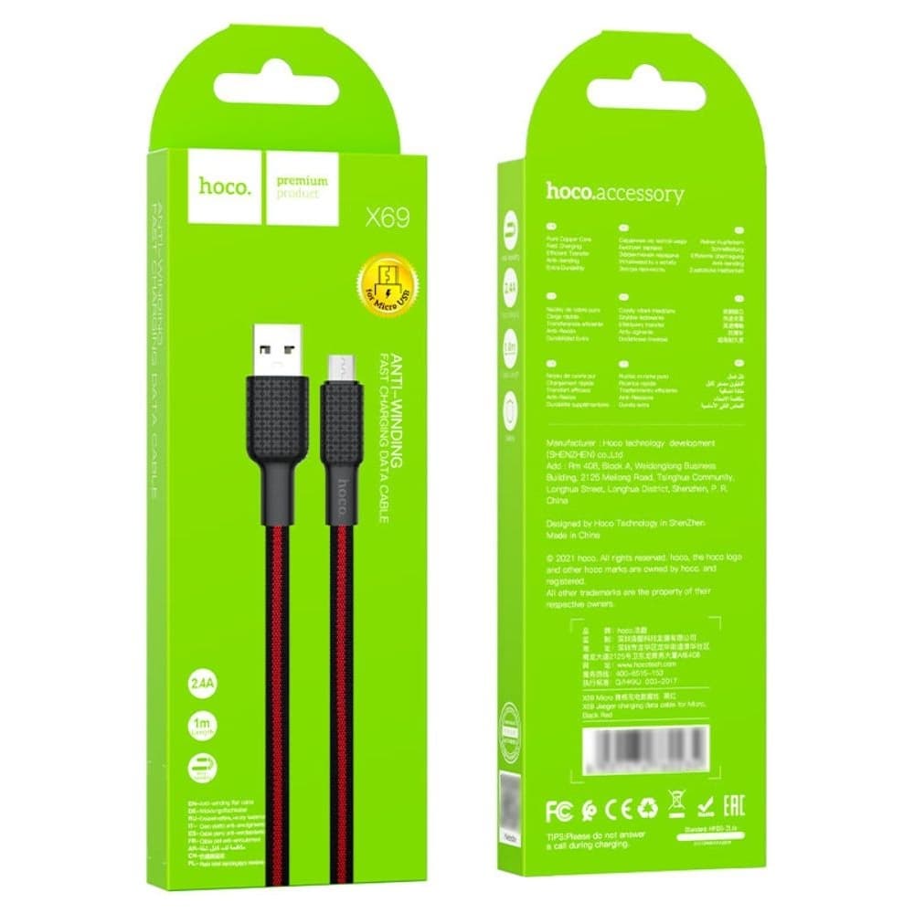 USB-кабель Hoco X69, Micro-USB, 2.4 А, 100 см, красный