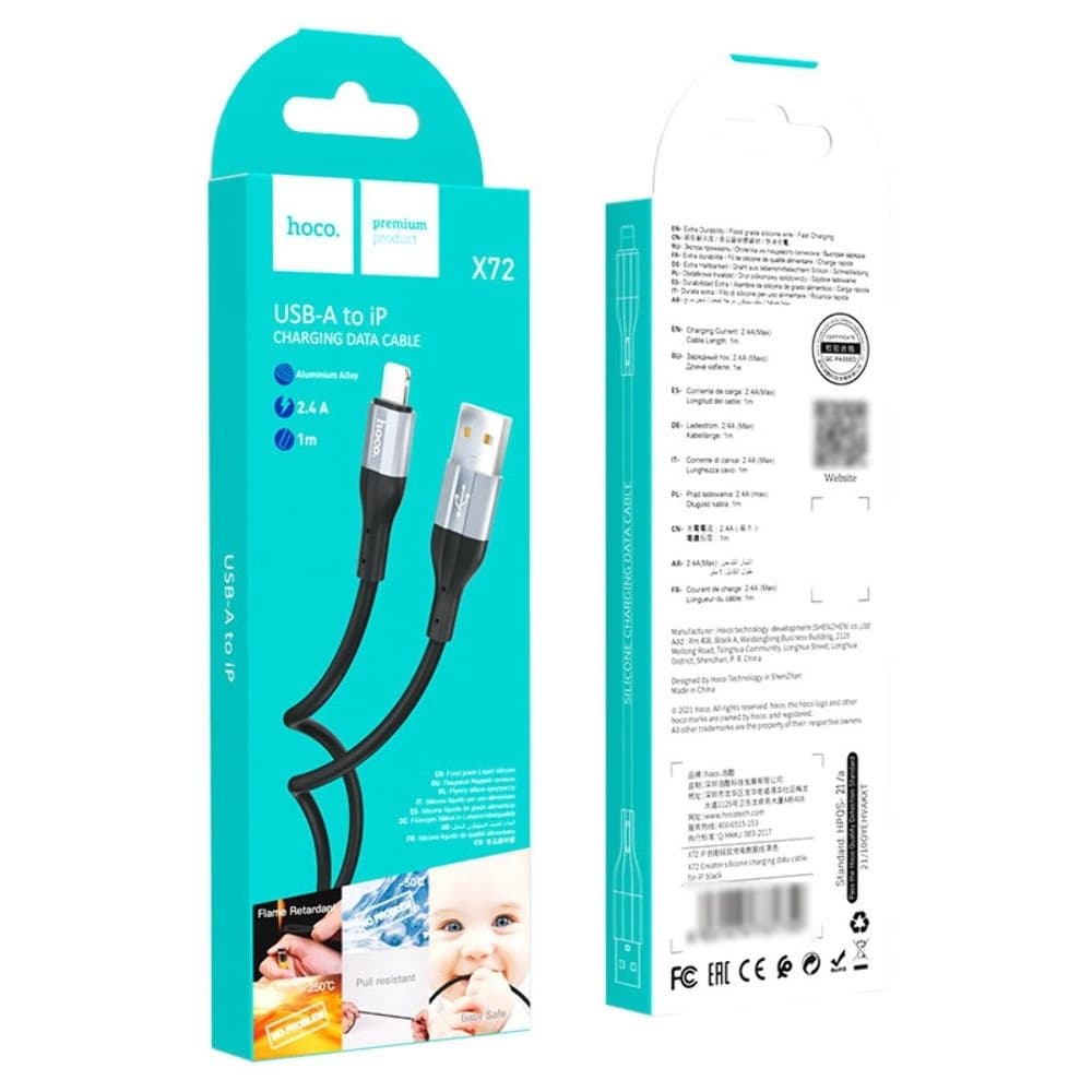 USB-кабель Hoco X72, Lightning, 2.4 А, 100 см, чорний