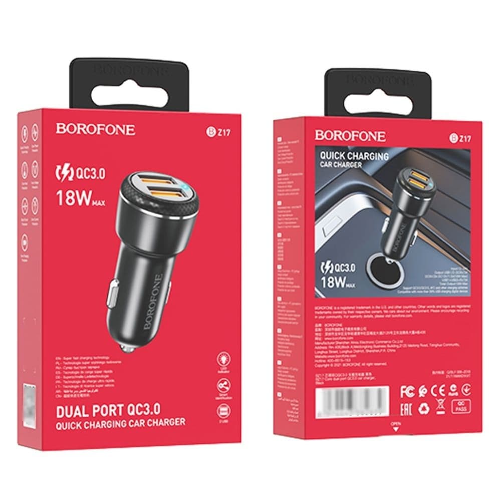Купить Автомобильний зарядний пристрій Borofone BZ17, 2 USB, Quick Charge 3.0, чорний | зарядка, зарядное устройство можно и в нашем офисе, платить за доставку при этом не нужно.
