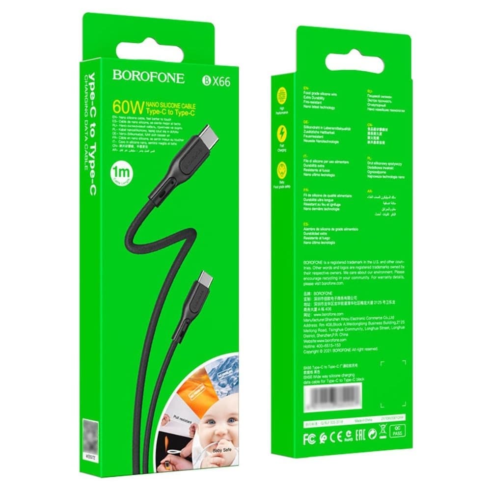 USB-кабель Borofone BX66, Type-C на Type-C, 5.0 А, 100 см, чорний