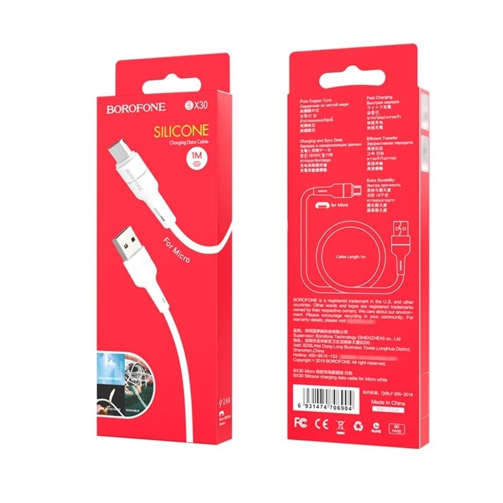 USB-кабель Borofone BX30, Micro-USB, 2.4 А, 100 см, білий