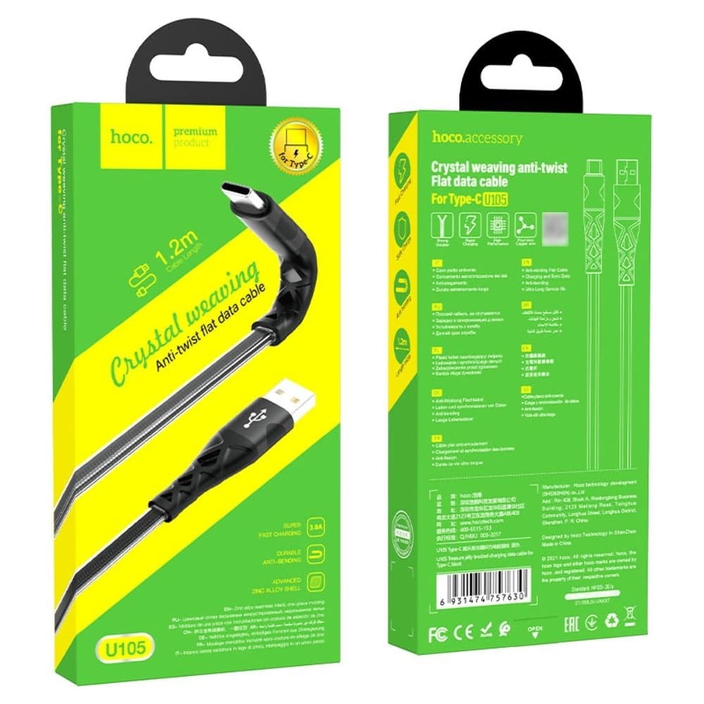 USB-кабель Hoco U105, Type-C, 3.0 А, 120 см, чорний