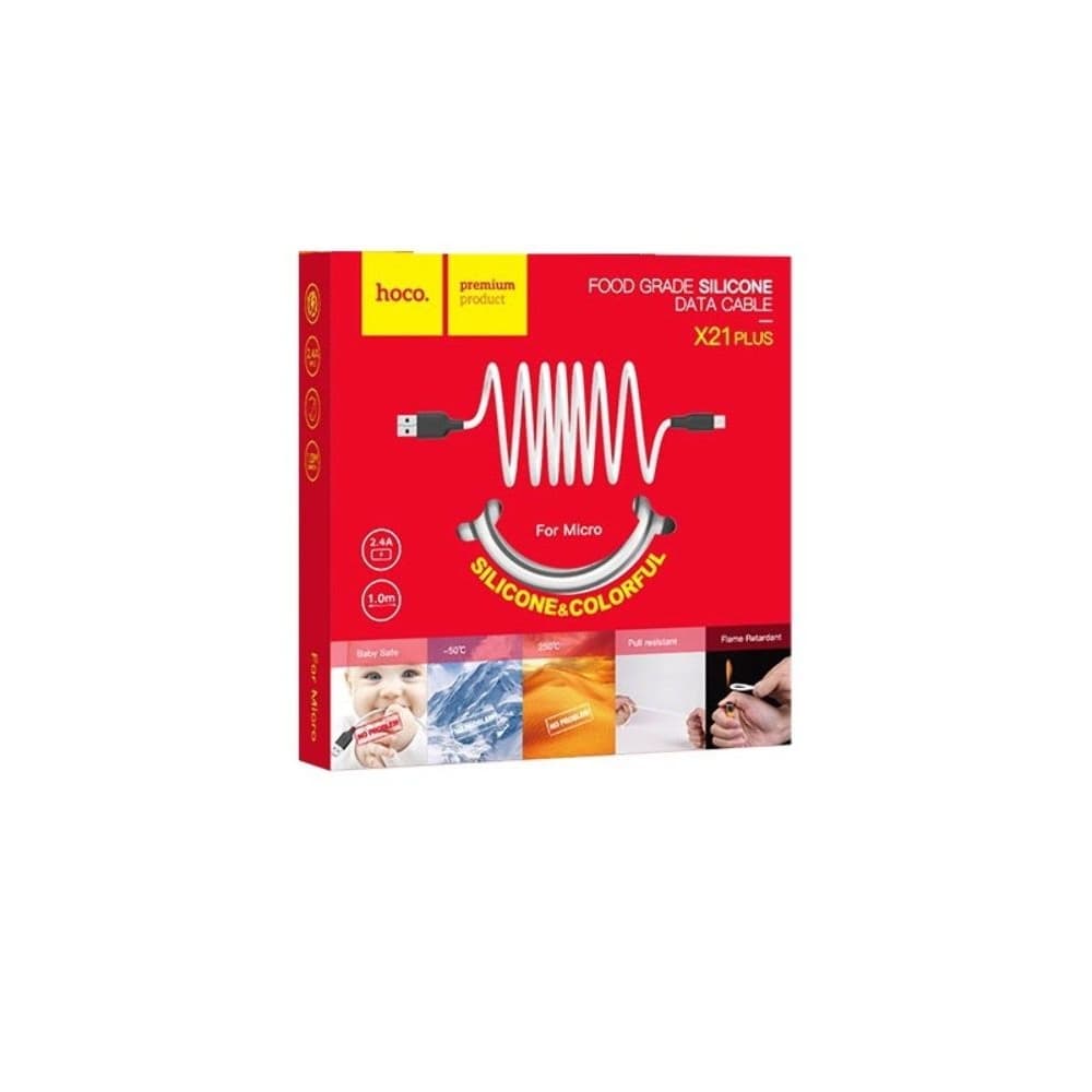 USB-кабель Hoco X21 Plus, Micro-USB, 2.4 А, 100 см, білий