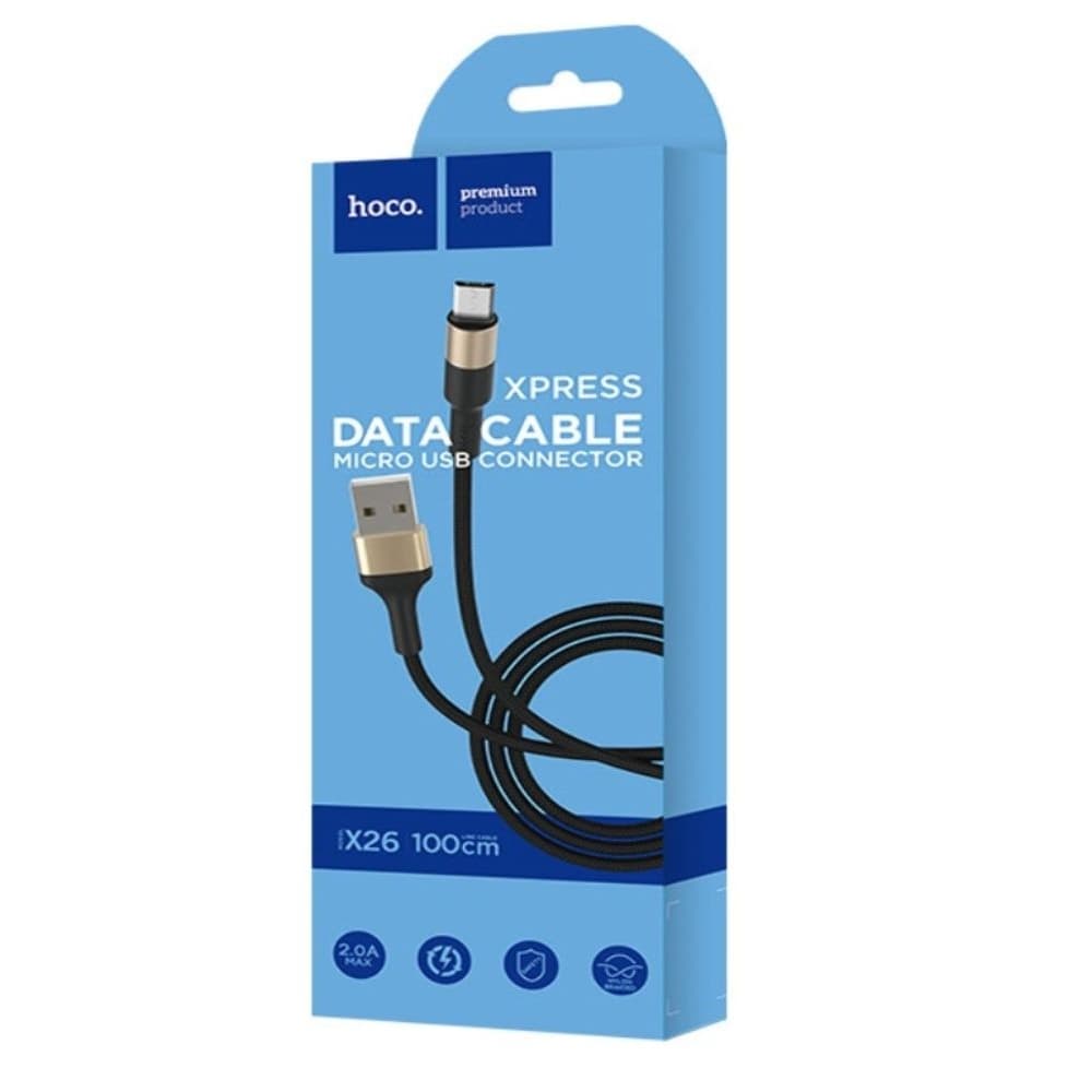 Купить USB-кабель Hoco X26, Micro-USB, 2.0 А, 100 см, чорний, золотистий можно и в нашем офисе, платить за доставку при этом не нужно.
